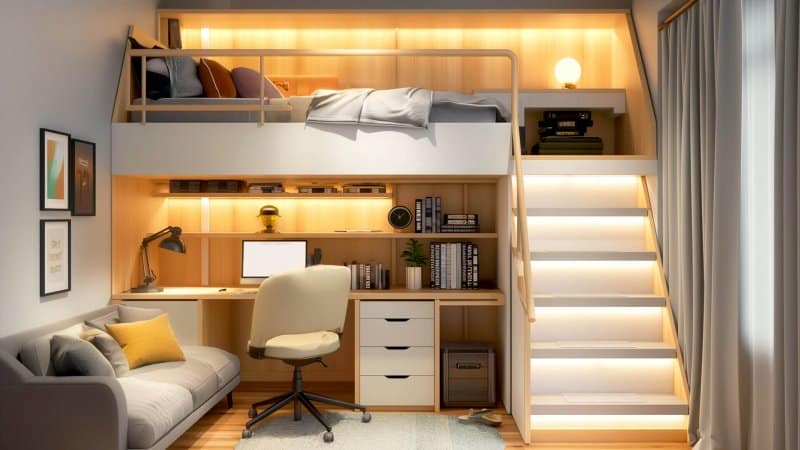 Unterschätzte Flächen wie Nischen, hohe Wände oder Dachschrägen bieten großes Potenzial für Stauraum. Regale bis zur Decke, maßgefertigte Einbauschränke oder Schubladen unter Treppen schaffen Ordnung ohne Platzverlust. Auch unter Betten, Sofas oder Sitzbänken lassen sich Boxen, Körbe oder ausziehbare Fächer integrieren – ideal für selten genutzte Gegenstände.